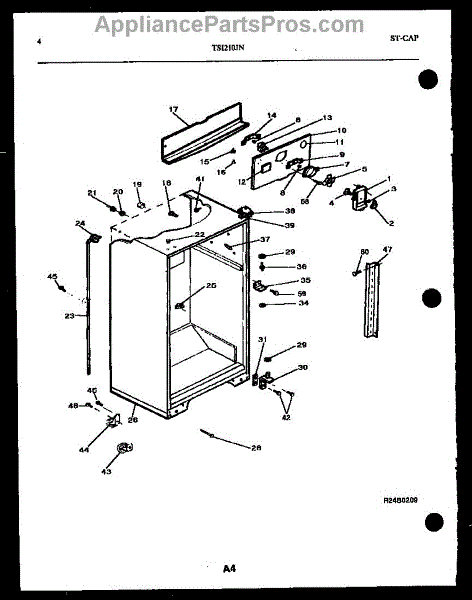This plug covers the small factory test opening on an appliance cabinet or liner. Replacing a missing or damaged plug helps close the opening to maintain a better seal and restore a clean, finished appearance.