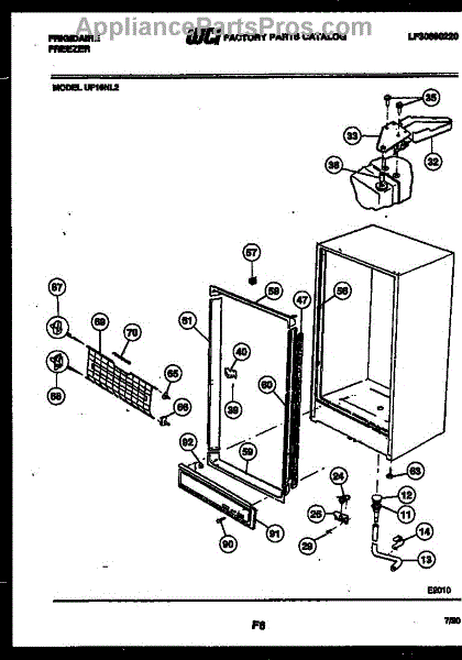 This top support (left) is a molded mounting bracket that secures the refrigerator cabinet or inner liner at the cabinet's upper-left corner to restore proper alignment and stable fit of the top section. It replaces a cracked, broken or missing upper-left support. What it does: