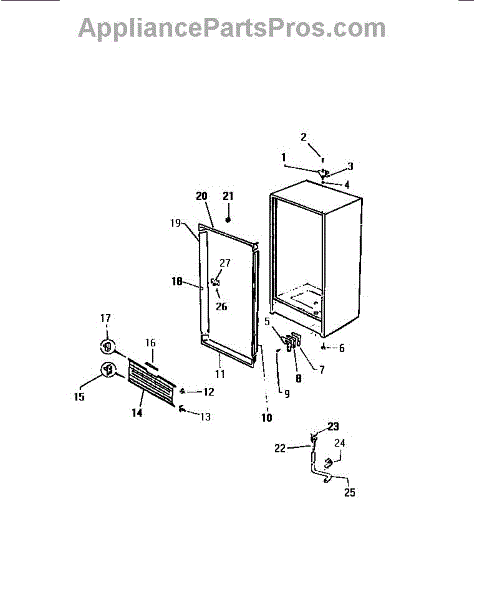 This top support (left) is a molded mounting bracket that secures the refrigerator cabinet or inner liner at the cabinet's upper-left corner to restore proper alignment and stable fit of the top section. It replaces a cracked, broken or missing upper-left support. What it does: