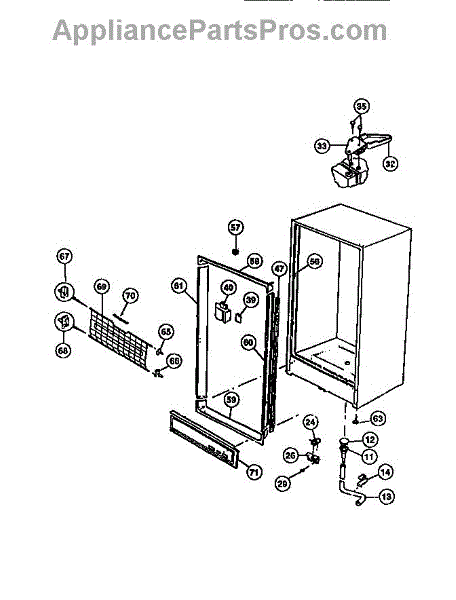 This top support (left) is a molded mounting bracket that secures the refrigerator cabinet or inner liner at the cabinet's upper-left corner to restore proper alignment and stable fit of the top section. It replaces a cracked, broken or missing upper-left support. What it does:
