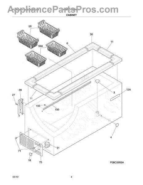 The lower basket holds and organizes items in the bottom section of the freezer. Replace a bent, broken, or missing basket to restore tidy storage and easier access to food in the lower compartment.
