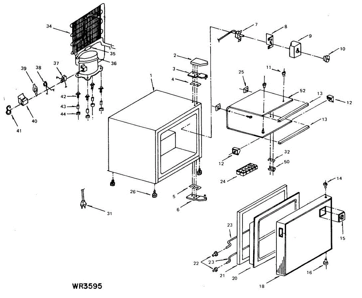 Supplies electrical power from wall outlet to refrigerator. Replace this cord if cut, frayed, overheated, or damaged to restore safe electrical connection.