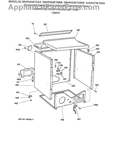 Parts for Ge DBXR453ET0AA: 05 - Cabinet Parts