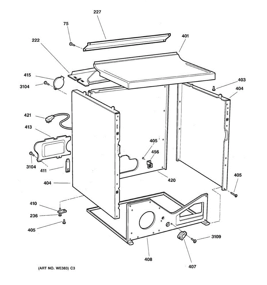 Parts for Ge DBXR453GT3WW: 04 - Cabinet Parts