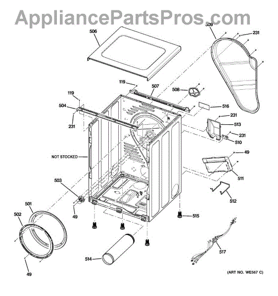 The EXHAUST DUCT ASSEMBLY is an OEM part for GE dryers. It incorporates both the exhaust duct that routes hot air out of the dryer and the duct housing shielding internal dryer components. This assembly works to expel moist air produced during cycles while simultaneously protecting internal wiring and other sensitive parts.