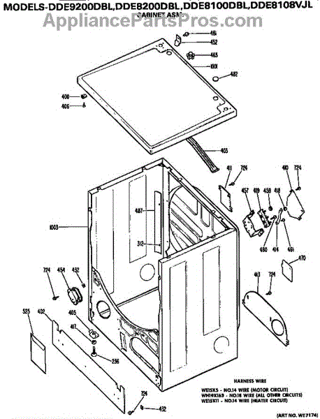 Parts for Ge DDE9200DBL: Cabinet Parts
