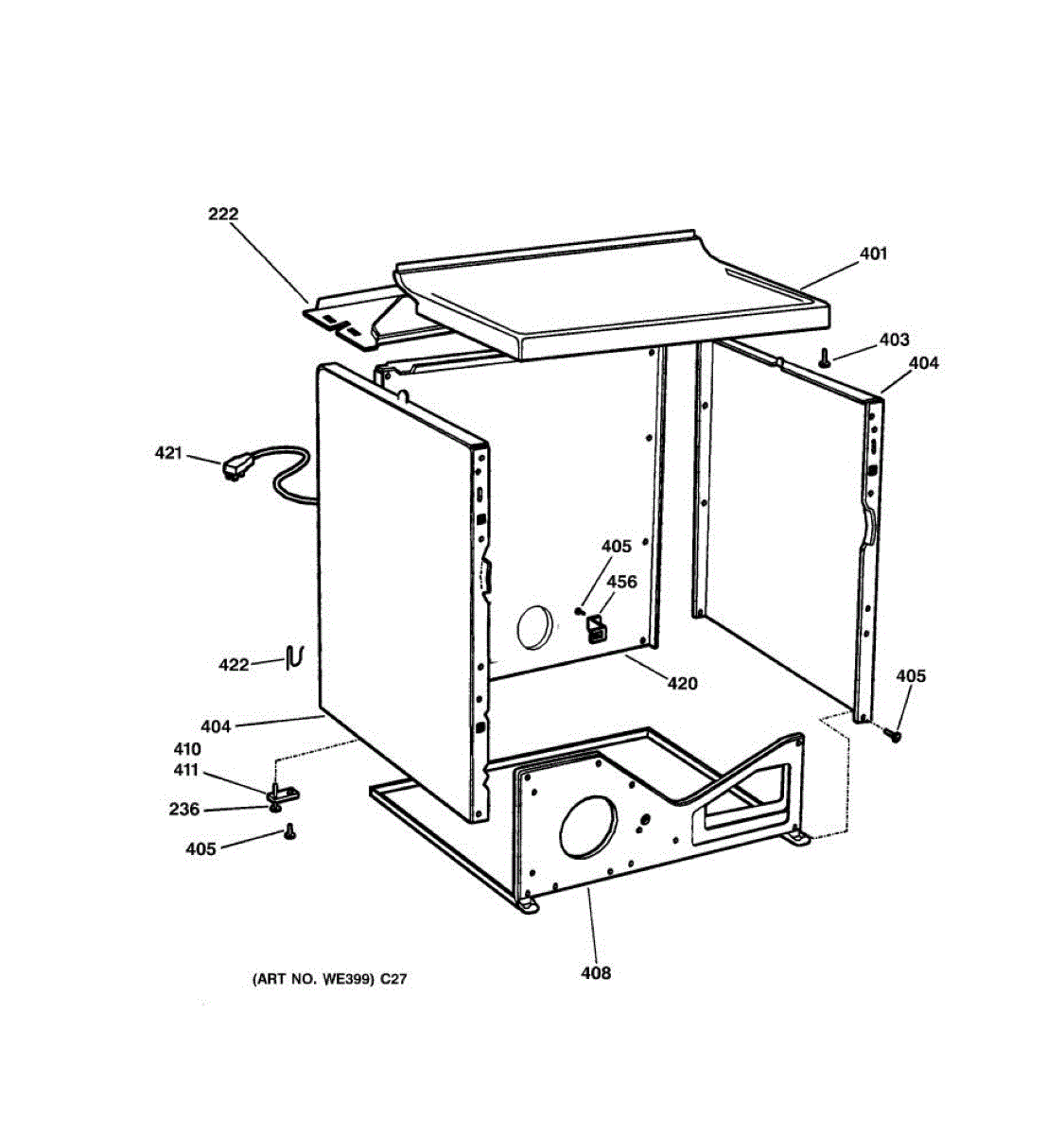 White cover panel that installs on top of your dryer cabinet. Replace if cracked, rusted, loose, or missing to restore a clean appearance.