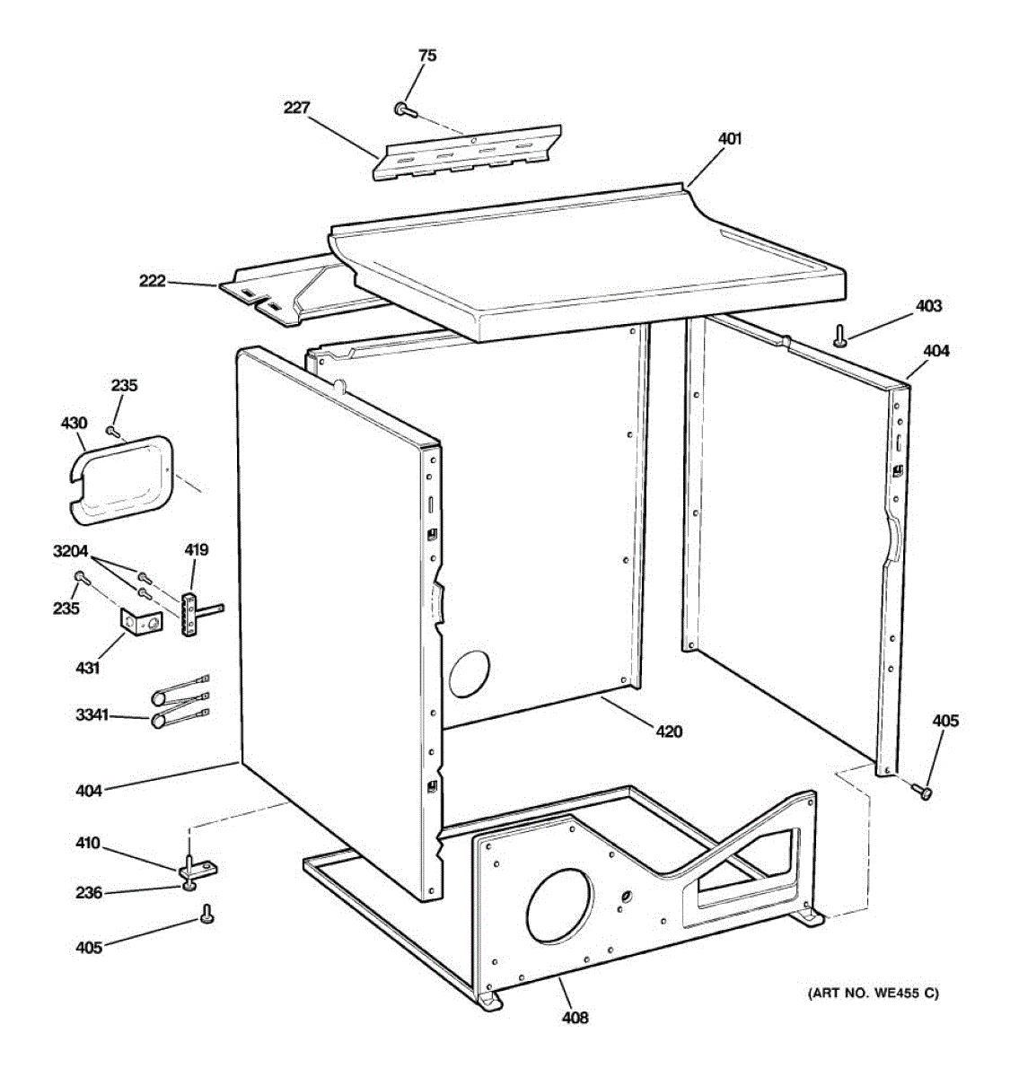 White cover panel that installs on top of your dryer cabinet. Replace if cracked, rusted, loose, or missing to restore a clean appearance.