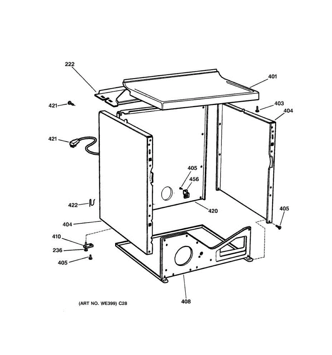 White cover panel that installs on top of your dryer cabinet. Replace if cracked, rusted, loose, or missing to restore a clean appearance.
