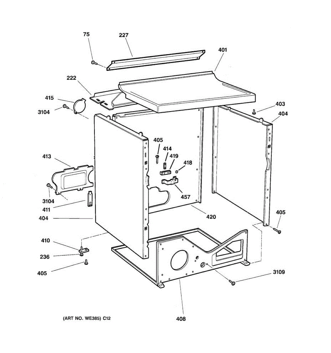 White cover panel that installs on top of your dryer cabinet. Replace if cracked, rusted, loose, or missing to restore a clean appearance.