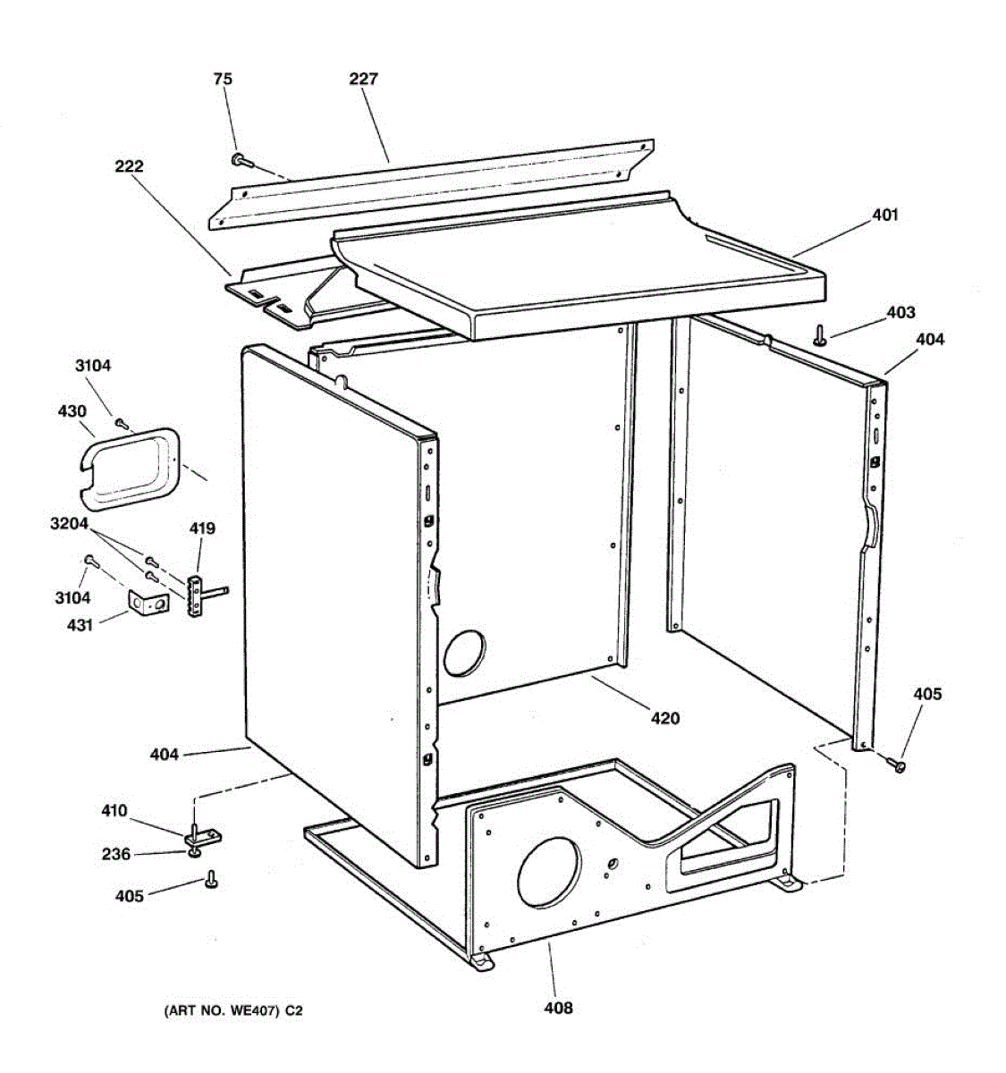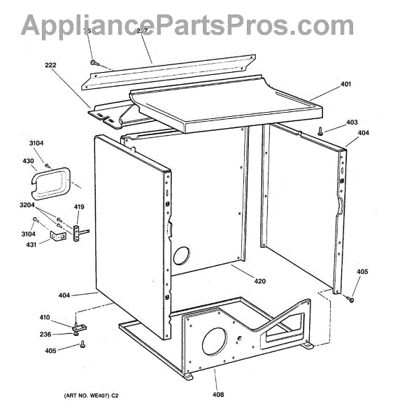 Parts for Ge DPSR405EA0AA: 03 - Cabinet Parts