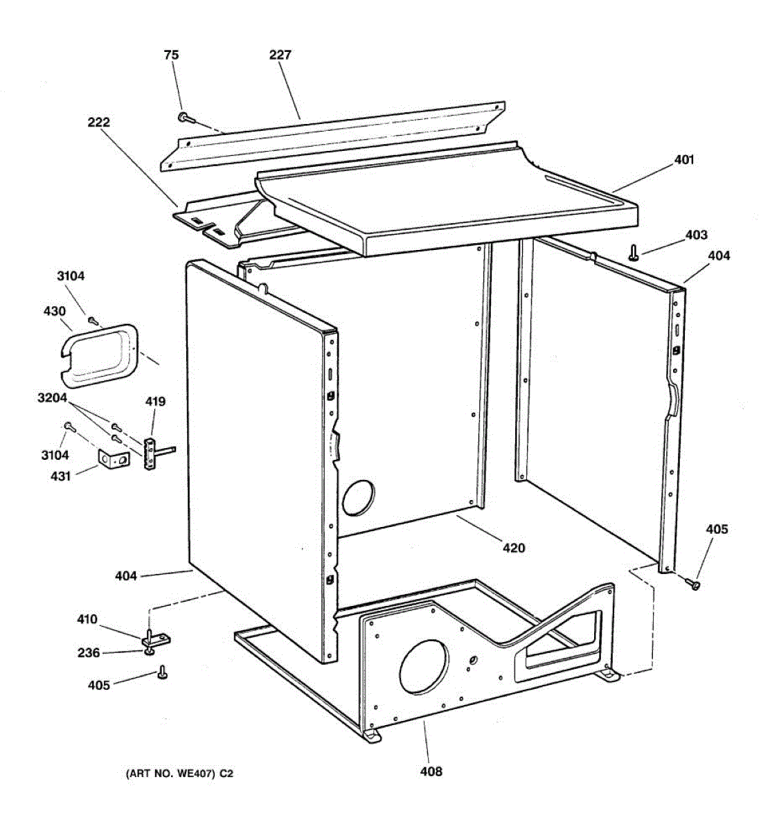White cover panel that installs on top of your dryer cabinet. Replace if cracked, rusted, loose, or missing to restore a clean appearance.