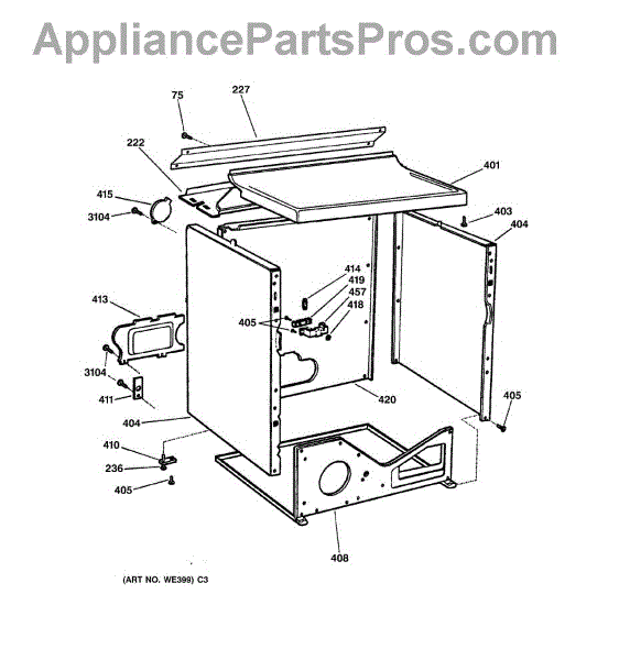 Parts for Ge DPXR473EW0WW: 03 - Cabinet Parts