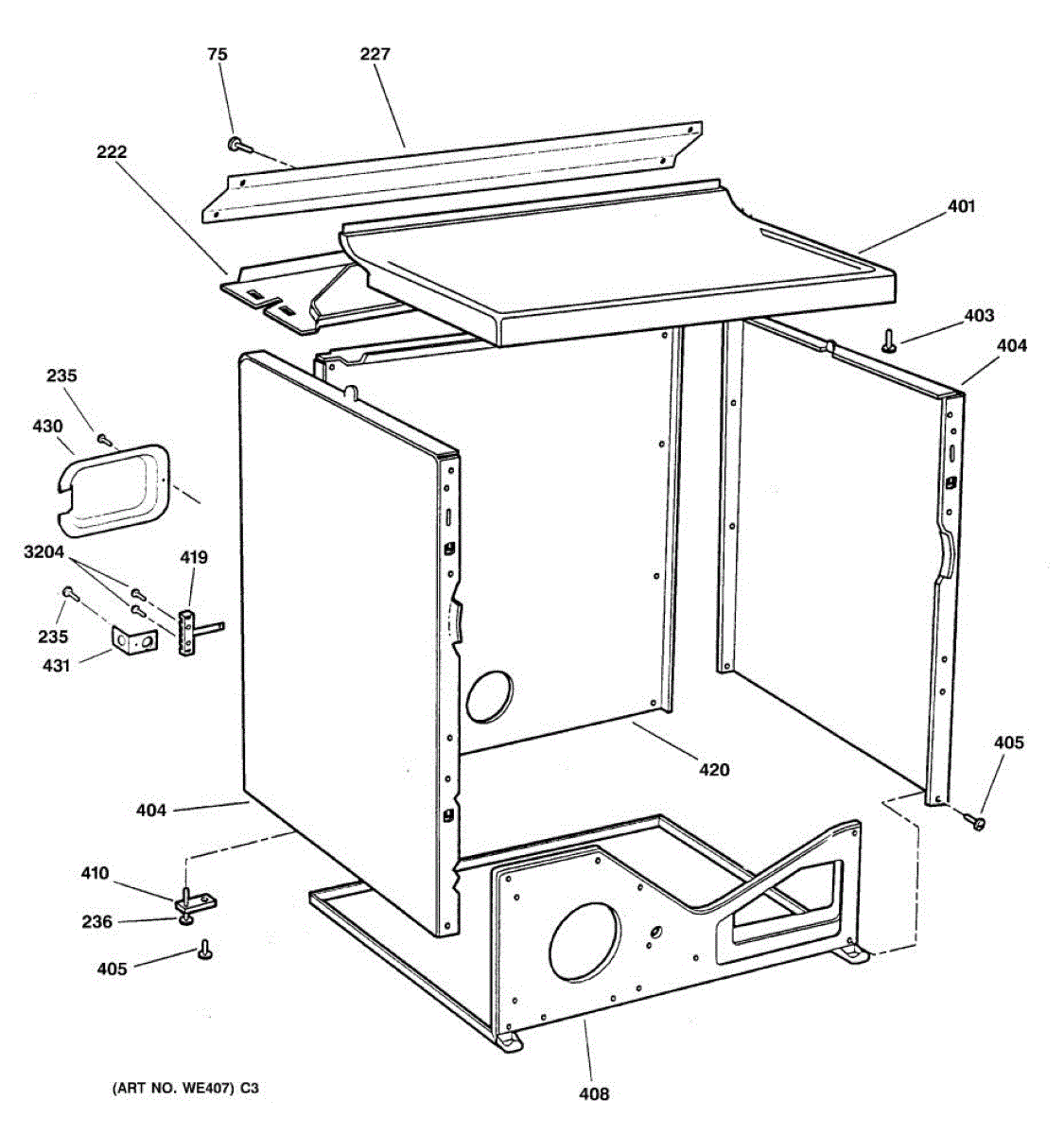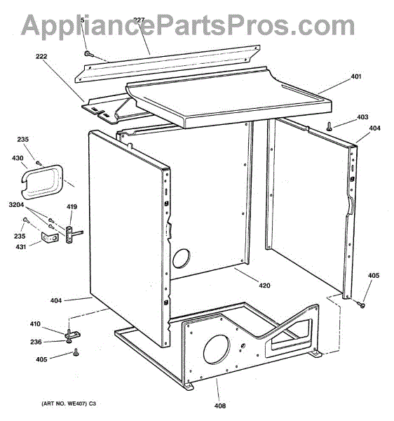 White cover panel that installs on top of your dryer cabinet. Replace if cracked, rusted, loose, or missing to restore a clean appearance.