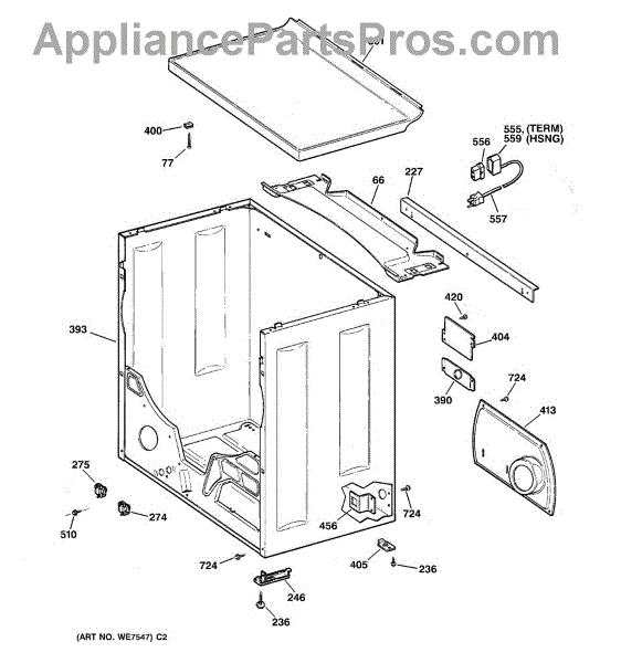 Parts for Ge DVLR223GT1WW: 03 - Cabinet Parts