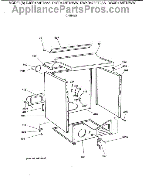 Parts for Ge DWXR473ET2WW: 04 - Cabinet Parts