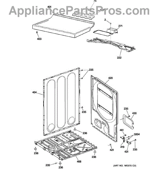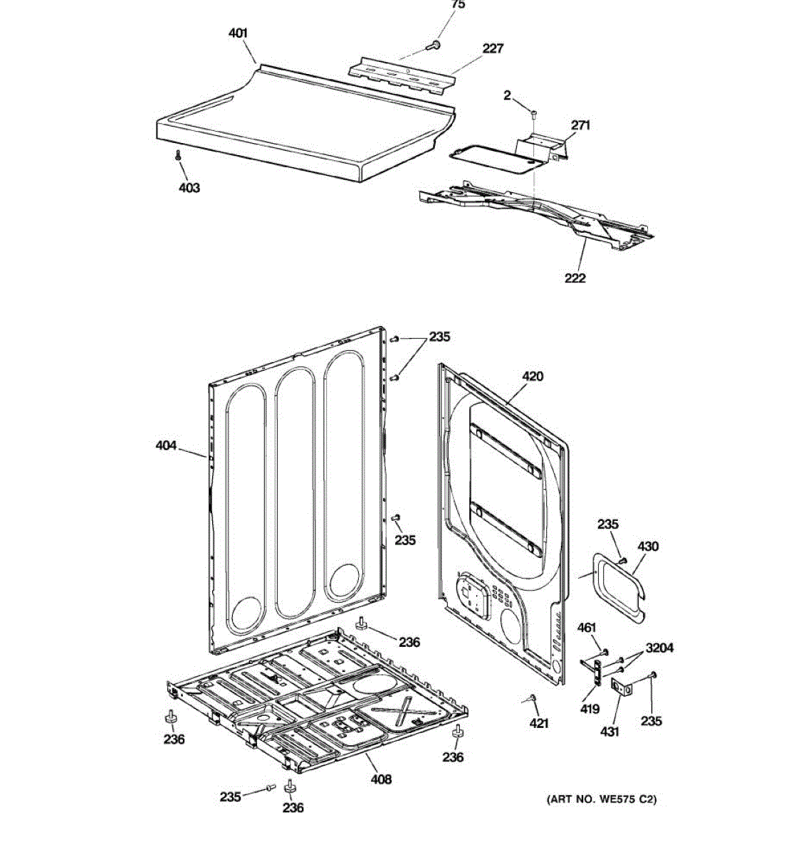 White cover panel that installs on top of your dryer cabinet. Replace if cracked, rusted, loose, or missing to restore a clean appearance.