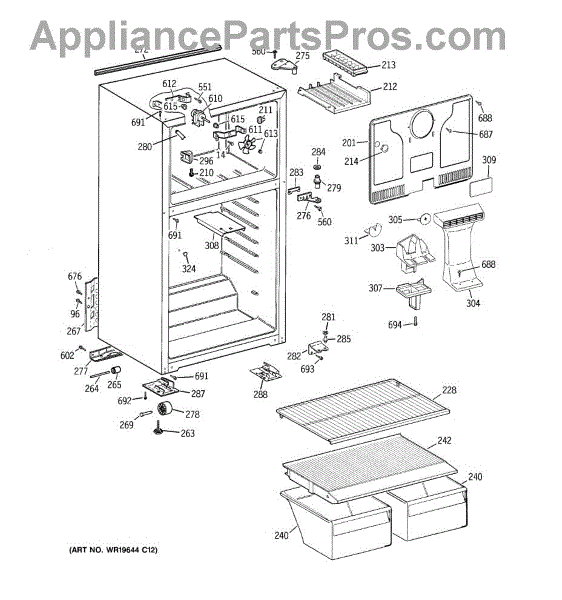 The Foam Duct is an OEM replacment part for GE refrigerators. It is an insulating conduit located within the fresh food compartment that helps direct chilled air circulation from evaporator coils throughout interior shelves and bins. The foam duct plays an important temperature regulation role by strategically venting cool air where needed. Causes can involve cracks in rigid duct walls, compressed insulation, or obstructions within the airflow pathway restricting proper circulation Symptoms of a defective duct include: