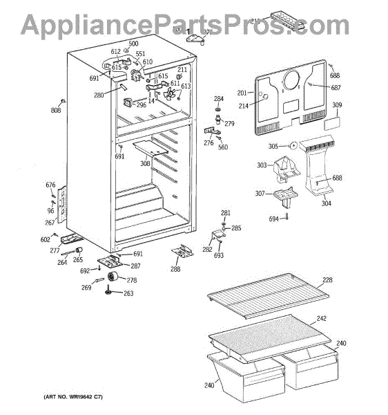 The Foam Duct is an OEM replacment part for GE refrigerators. It is an insulating conduit located within the fresh food compartment that helps direct chilled air circulation from evaporator coils throughout interior shelves and bins. The foam duct plays an important temperature regulation role by strategically venting cool air where needed. Causes can involve cracks in rigid duct walls, compressed insulation, or obstructions within the airflow pathway restricting proper circulation Symptoms of a defective duct include: