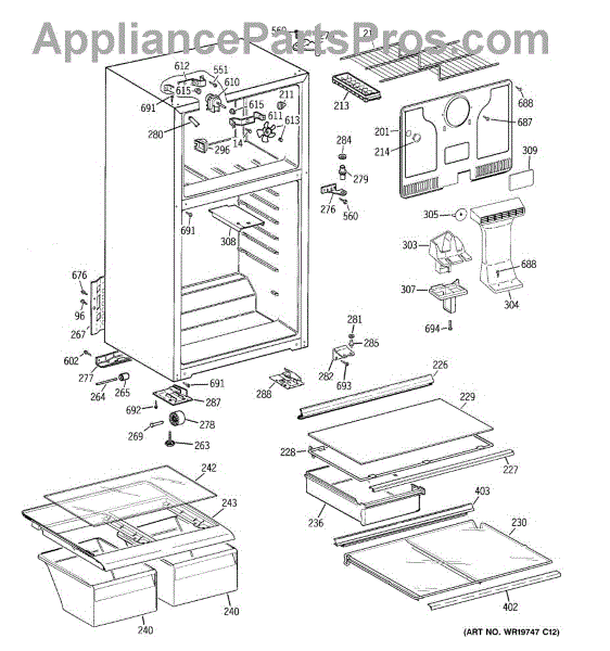 The Foam Duct is an OEM replacment part for GE refrigerators. It is an insulating conduit located within the fresh food compartment that helps direct chilled air circulation from evaporator coils throughout interior shelves and bins. The foam duct plays an important temperature regulation role by strategically venting cool air where needed. Causes can involve cracks in rigid duct walls, compressed insulation, or obstructions within the airflow pathway restricting proper circulation Symptoms of a defective duct include: