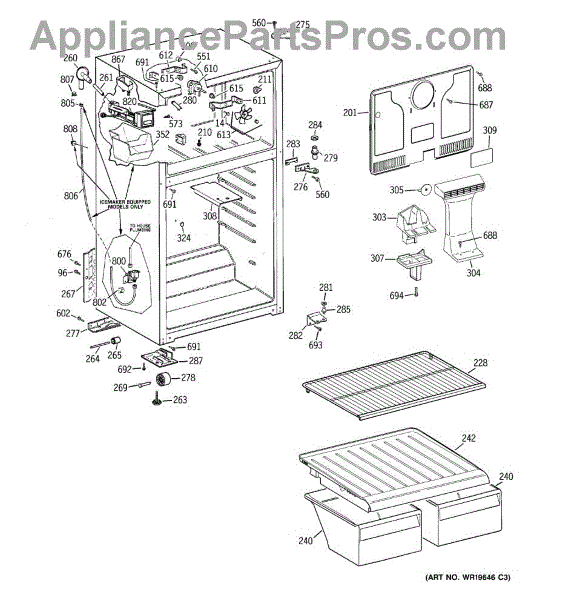 The Ice Bucket is an OEM replacement part for GE refrigerator-freezers. It collects and stores freshly produced ice within the freezer compartment. This bucket is made of white plastic and is approximately 13 inches in length and 9 inches wide at the widest point.