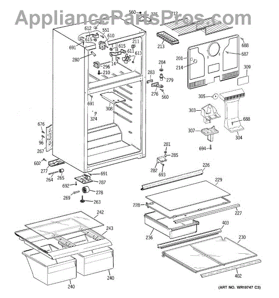 Parts for Ge GTS17GBSARWW: 02 - Cabinet Parts