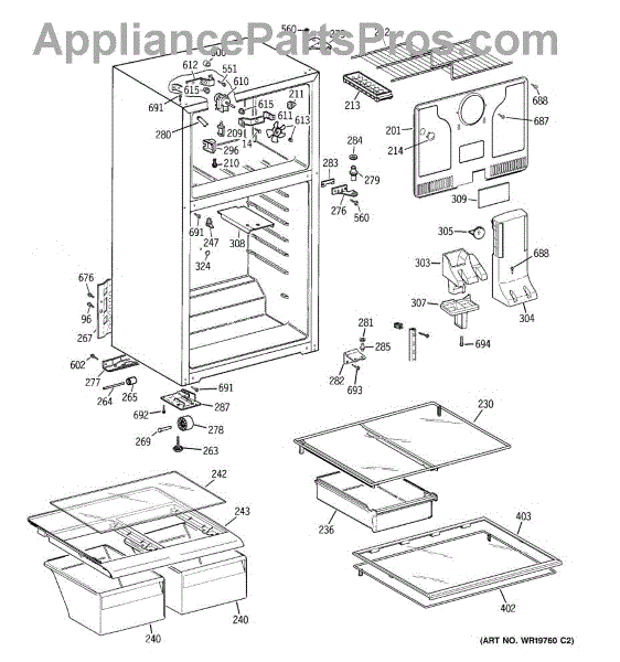 Parts for Ge GTS18RBSARWW: 02 - Cabinet Parts