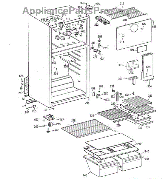 Parts for Ge GTT18FBMDRWW: Cabinet Parts