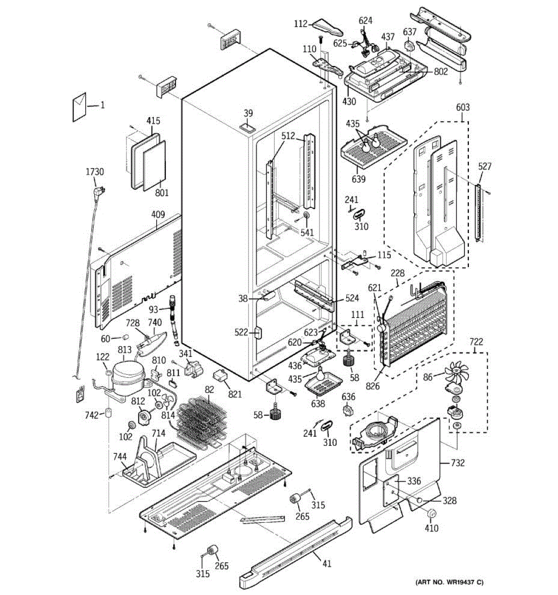 Main cover cap for refrigerator. Protects internal components and provides finished appearance. Replace if cracked, broken, or missing. Direct fit.