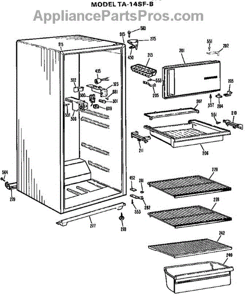 Parts for Ge TA14SFBLWH: Cabinet Parts