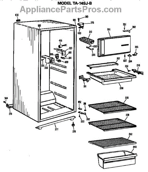 Parts for Ge TA14SJBL: Cabinet Parts