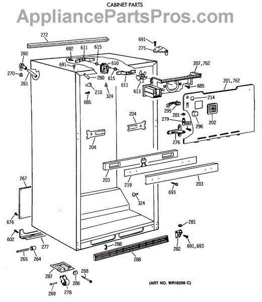 Parts for Ge TBE18DATMRWH: 03 - Cabinet Parts