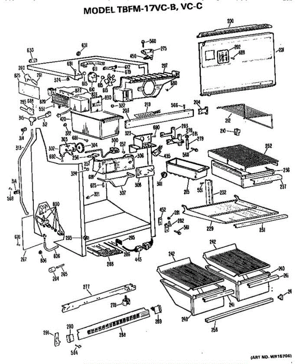 Parts for Ge TBFM17VCC: Cabinet Parts