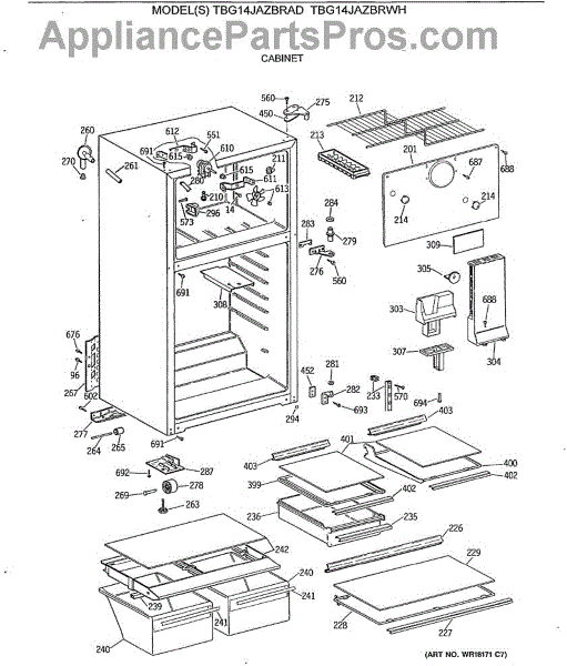 Parts for Ge TBG14JAZBRAD: 02 - Cabinet Parts