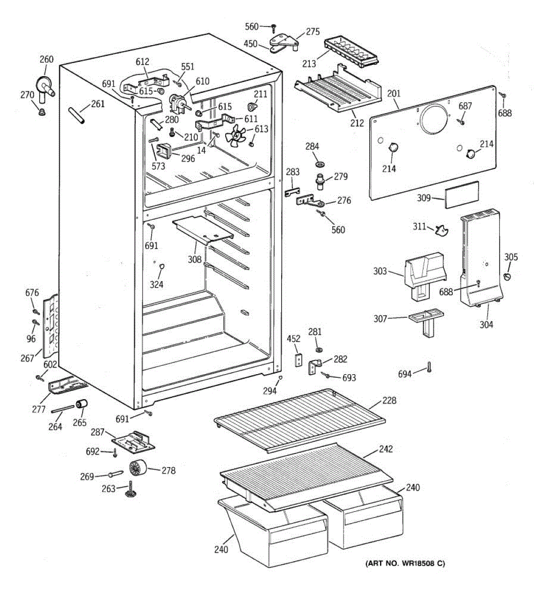 Parts for Ge TBG14SABCRWH: 02 - Cabinet Parts