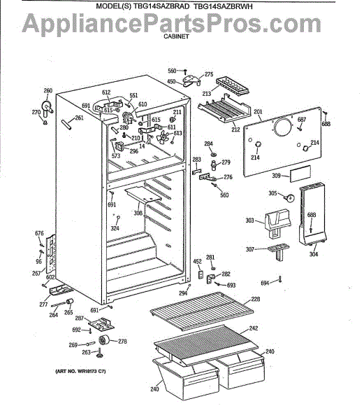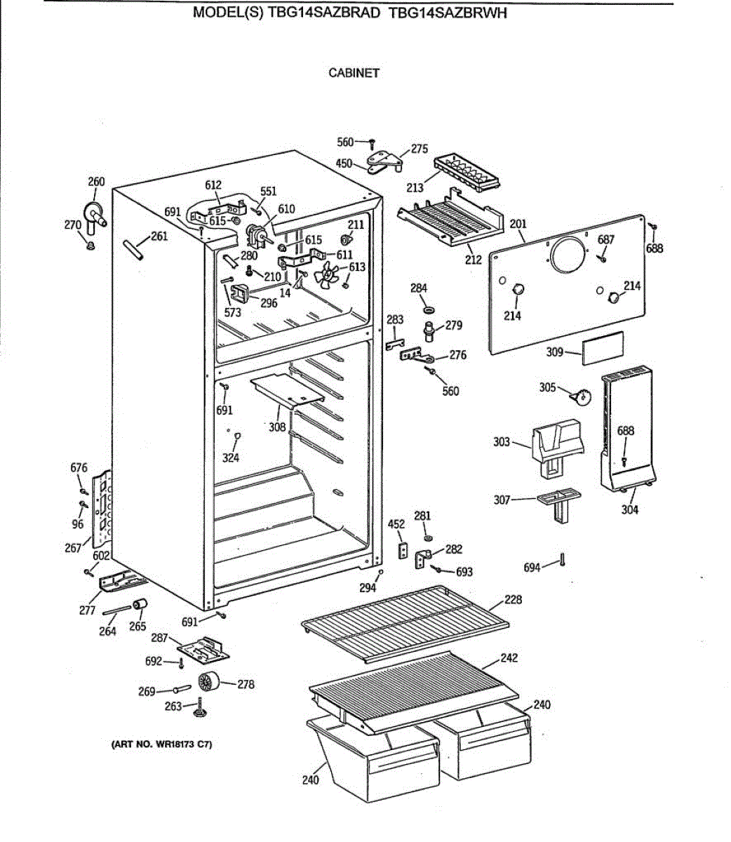 Parts for Ge TBG14SAZBRAD: 02 - Cabinet Parts