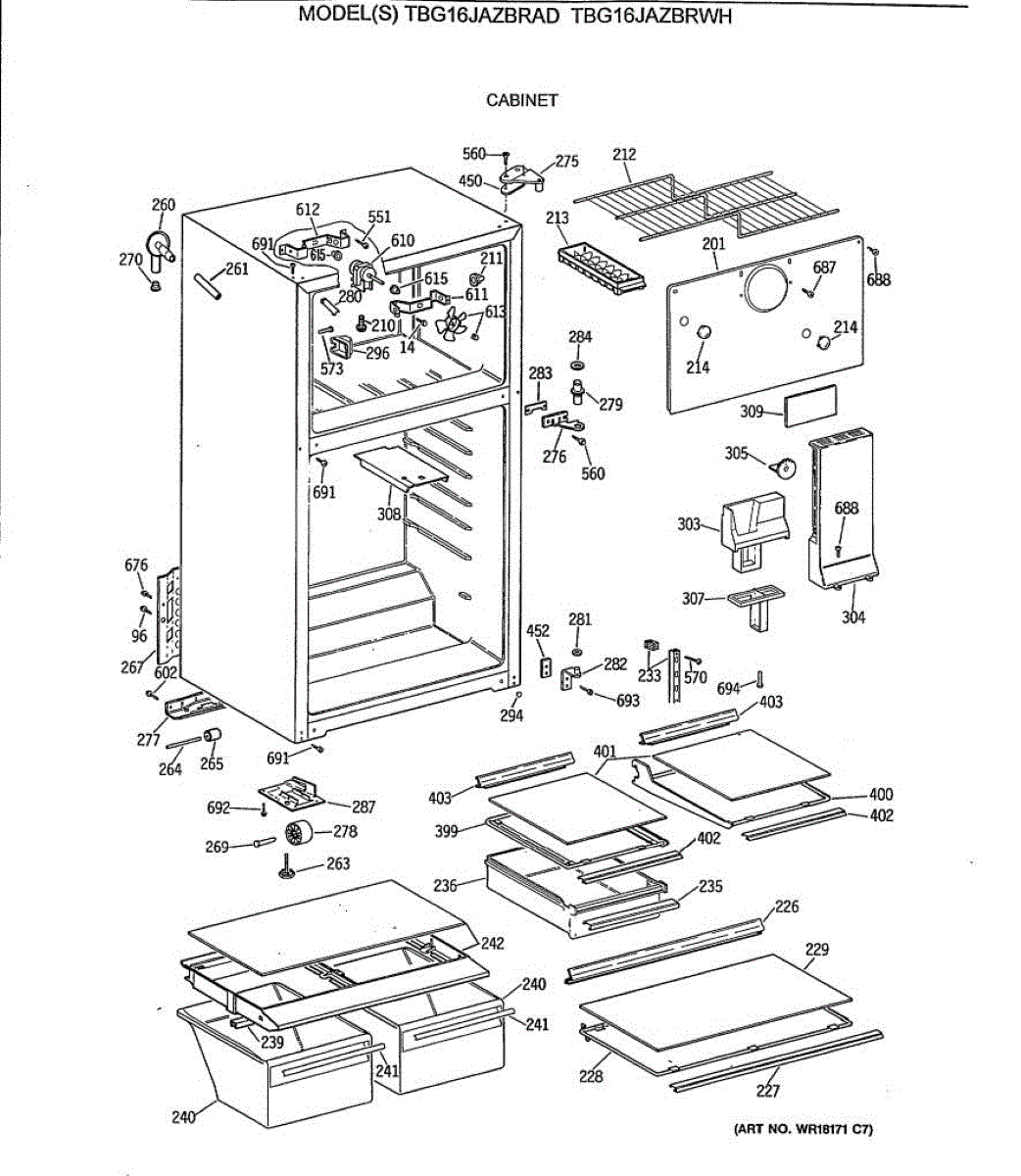 Parts for Ge TBG16JAZBRWH: 02 - Cabinet Parts