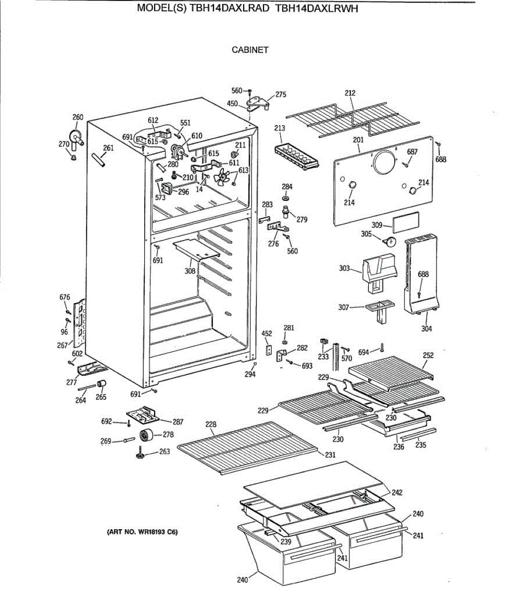 Parts for Ge TBH14DAXLRWH: 02 - Cabinet Parts