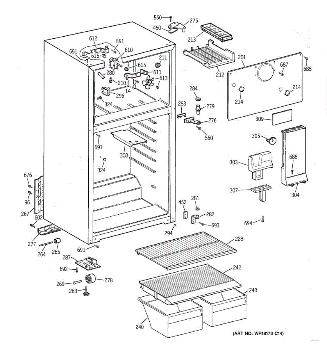 Parts for Ge TBH16SAADLWW: 02 - Cabinet Parts