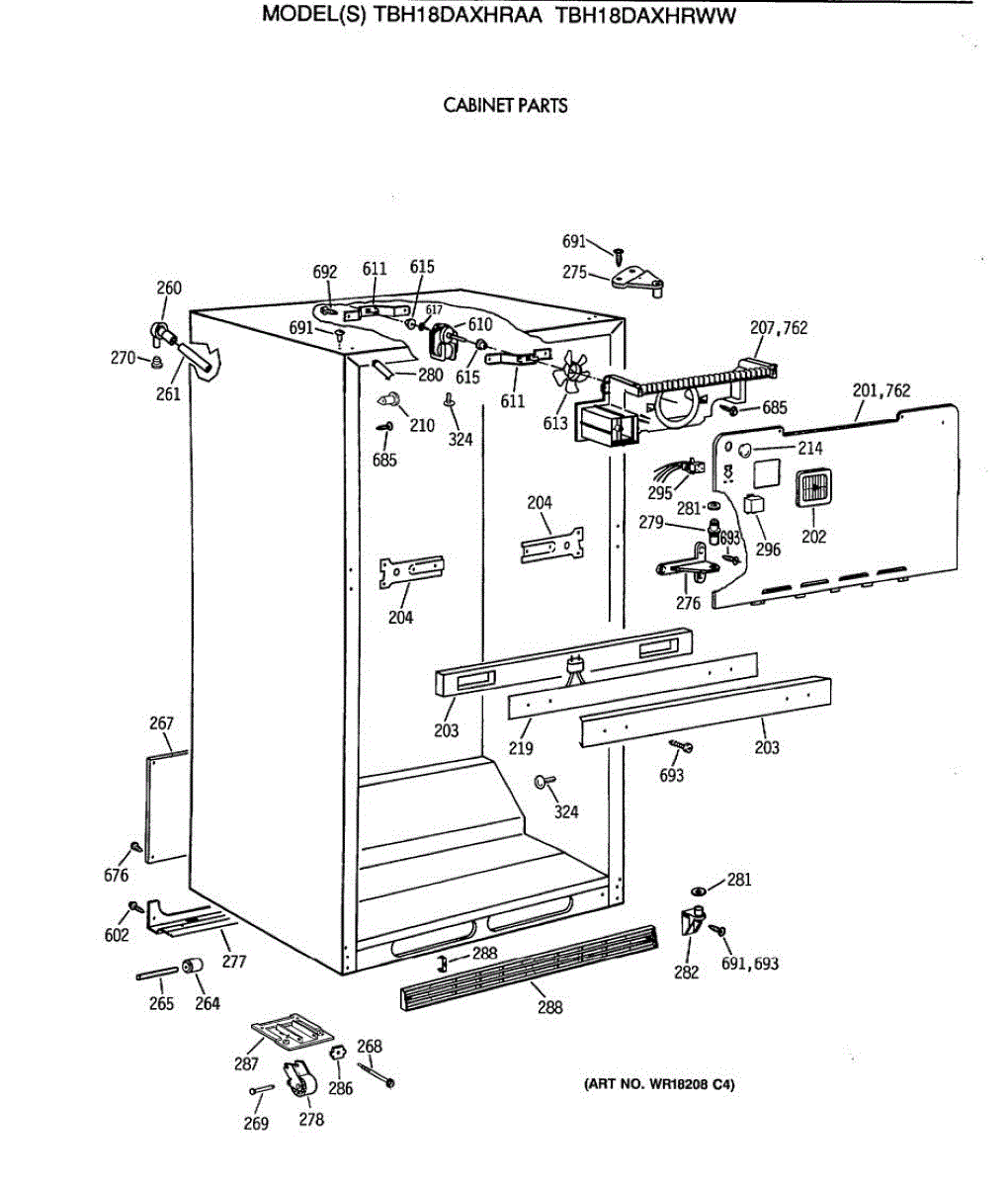 Parts for Ge TBH18DAXHRWW: 03 - Cabinet Parts