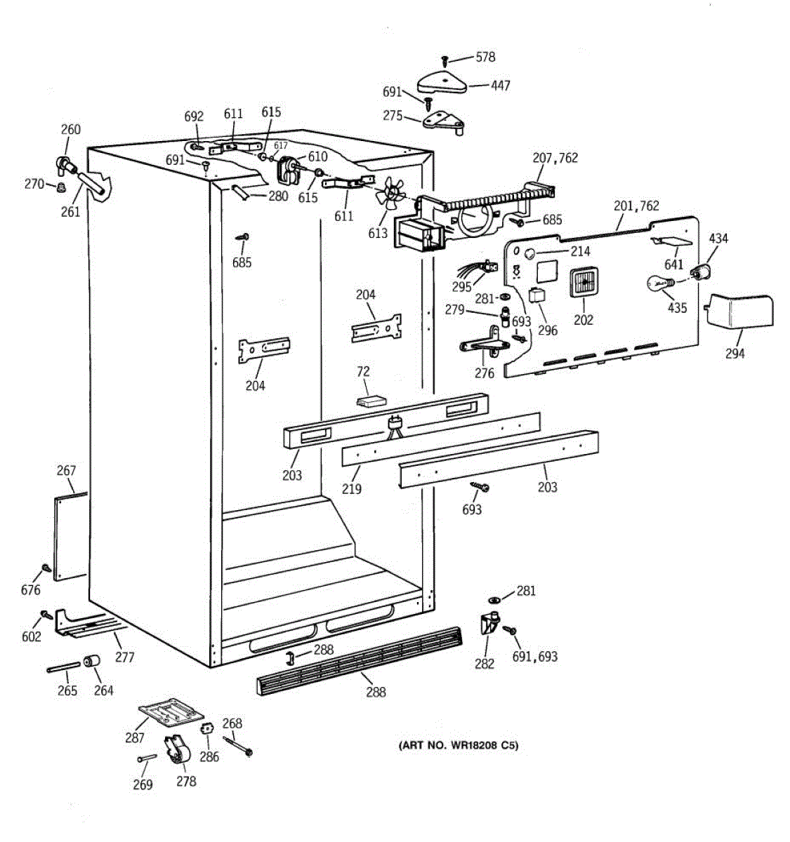 Parts for Ge TBH19PAXHRWW: 03 - Cabinet Parts