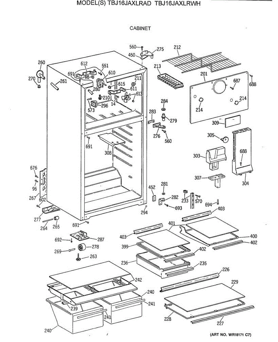 Parts for Ge TBJ16JAXLRWH: 02 - Cabinet Parts