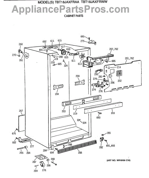 Parts for Ge TBT18JAXFRAA: 03 - Cabinet Parts