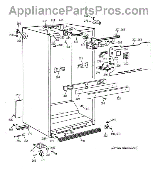 This evaporator fan blade mounts on the freezer fan motor and circulates air across the evaporator coils. Replacing a cracked or warped blade restores proper airflow for even cooling and more consistent temperatures throughout the refrigerator.