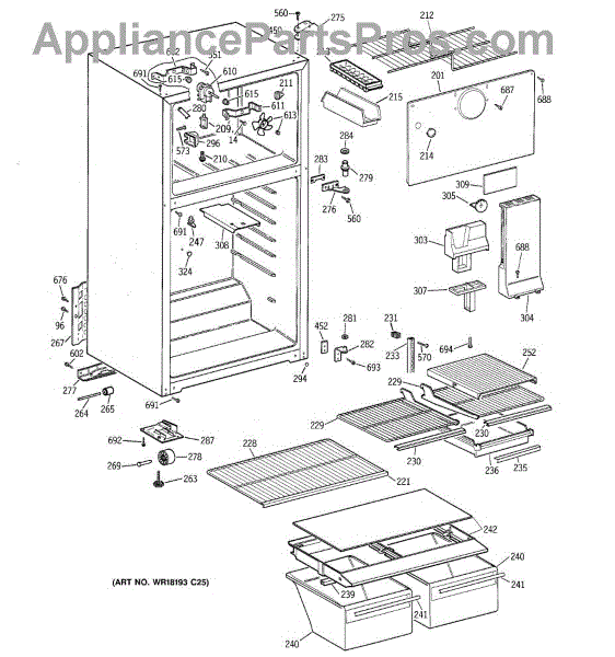 Parts for Ge TBX14DABNRWW: 02 - Cabinet Parts