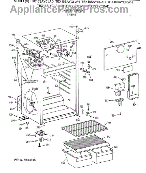 Parts for Ge TBX16SIYCLAD: 02 - Cabinet Parts