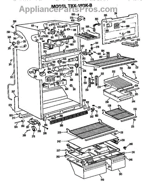Parts for Ge TBX18DKBR: Cabinet Parts