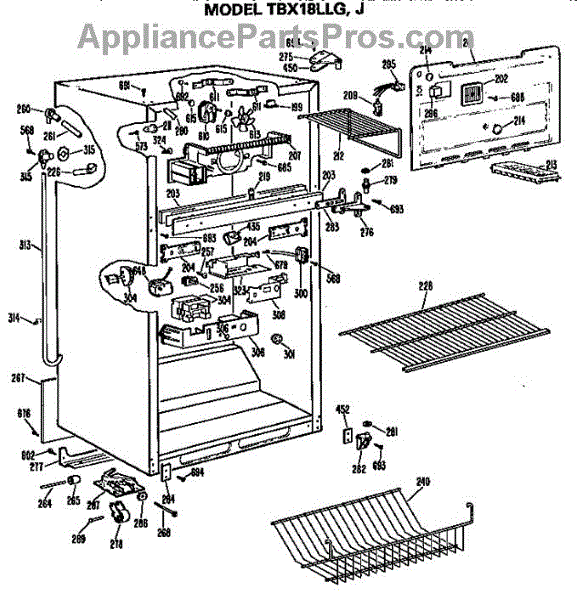 Parts for Ge TBX18LLGRAD: Cabinet Parts