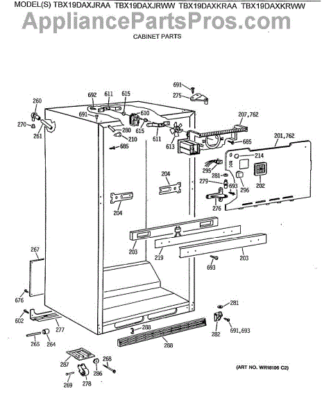 Parts for Ge TBX19DAXJRAA: 03 - Cabinet Parts