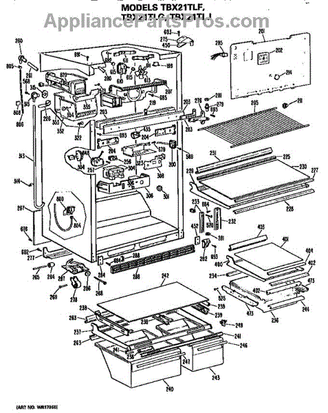Parts for Ge TBX21TLGRAD: Cabinet Parts